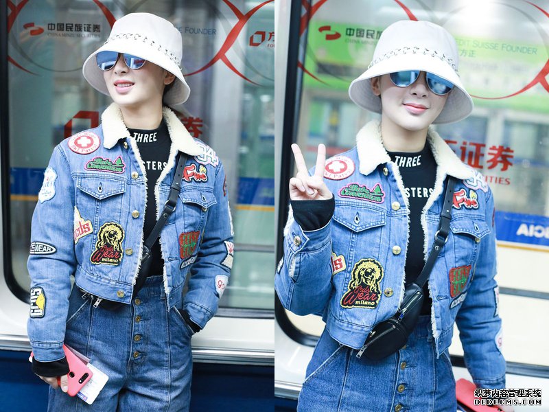 楊紫帥氣牛仔裝挎可愛小包包