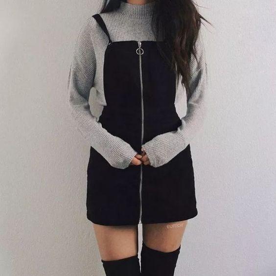 不要以為只有淺色才是舒服的顏色,其實深色同樣有這樣的感覺,即使是黑色,只要注意協調感就可以了。上身深色下半身可以淺色,如果有信心的人你也可以選擇疊穿,就是像下面第二張圖這樣,外面再罩一個毛衣。