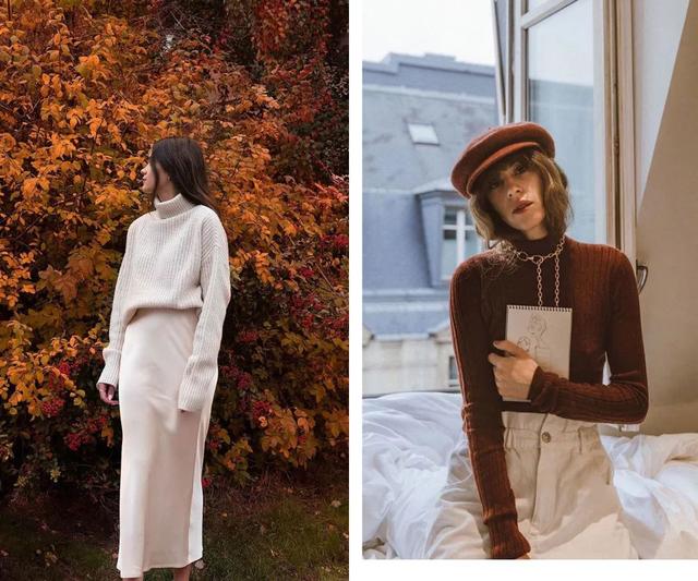 米色內搭在秋冬就會比彩色的內搭更好搭配,不管什麼顏色的裙子和褲子都可以搭配。讓你的秋冬搭配更加豐富。