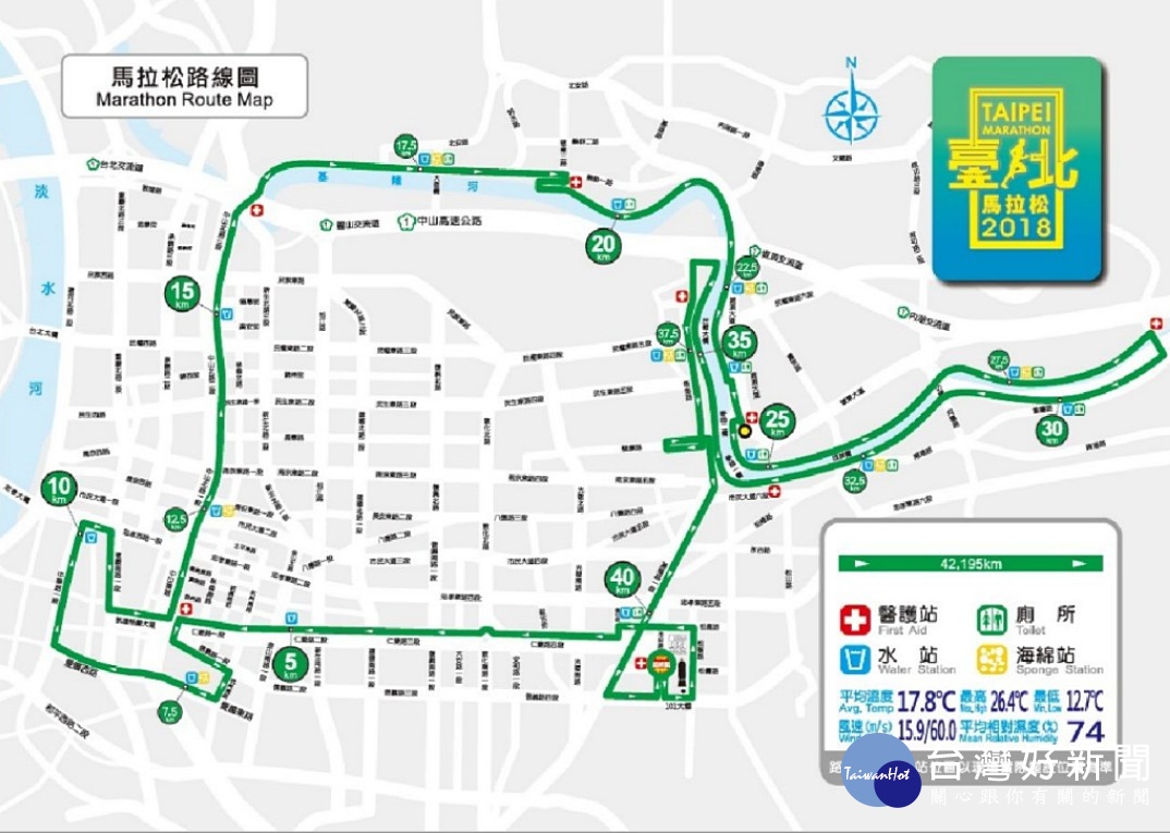 台北市警察局表示,北市府訂於2018年12月9日(週日)清晨5時至下午13時,舉辦「2018北北馬拉松」賽事,活動將於當(9)日6時30分起跑,沿線行經「市府路、信義路、松智路、松高路、逸仙路、仁愛路、信義路、杭州南路、愛國東(西)路、中華路、忠孝西路、重慶南路、凱達格蘭大道、中山南(北)路、北安路、明水路、樂群一路、堤頂大道、麥帥二橋、塔悠路與基隆路車行地下道等市區道路,以及大直橋至南湖大橋間之基隆河左、右岸河濱公園自行車道」,參加選手人數共計2.7萬人。