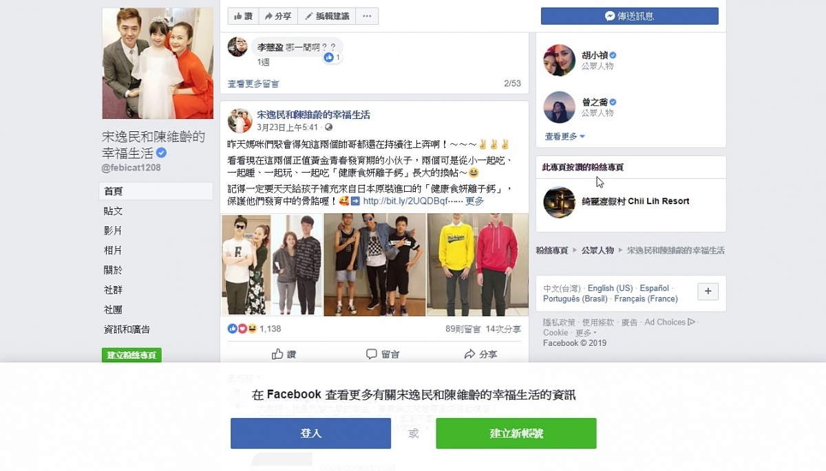 台北市府衛生局表示,該局統計自2016年至2019年3月,裁處網路食品違規廣告案共838件,達新台幣5034萬元罰鍰,其中網路部落客踩紅線最多次就是著名藝人宋逸民之妻太太陳維齡,其商品推薦文累積違規8次,也被累罰64萬元罰鍰。(圖/宋逸民和陳維齡的幸福生活Facebook粉絲團)