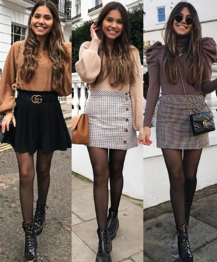 馬丁靴真的是老少皆宜的靴子了,算是現在所有的靴子里最百搭而且不挑人的鞋子,秋冬的馬丁靴可以搭配格子短裙,一定要是短裙才可以,因為馬丁靴是非常的顯腿長的靴子,穿長裙這個功能就會被減弱,所以短裙搭配針織上衣和外套,顯高又帥氣,天氣冷了就搭配打底褲一起穿,每個年齡段都合適。