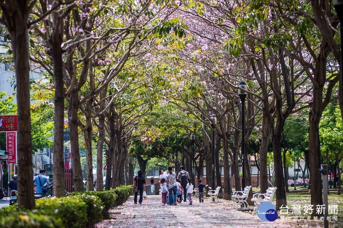 文化公園裡粉嫩的洋紅風鈴木悄悄開花,散發春天限定的氣息。粉色花朵不僅在樹上展現風姿,當微風輕輕一吹,瞬間更飄落到公園裡的人行步道與草皮上,其中散落在草皮上的花朵,更像是一席被粉紅花朵點綴的綠地毯,展現浪漫氣息。歡迎大家來這裡拍照捕捉美麗畫面,保證絕對不虛此行。