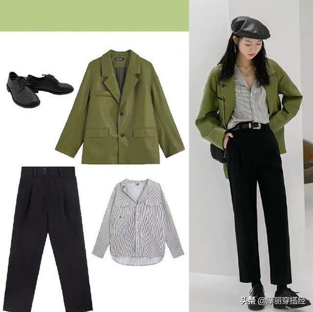 如果不敢來嘗試綠色外套,內搭也是不錯的主意,小小的嘗試,也算得上一種新的調整吧,給你的穿搭增添生命力。你覺得呢?最簡單的搭配方式,就是簡約的雙色系,給你別樣的風采。