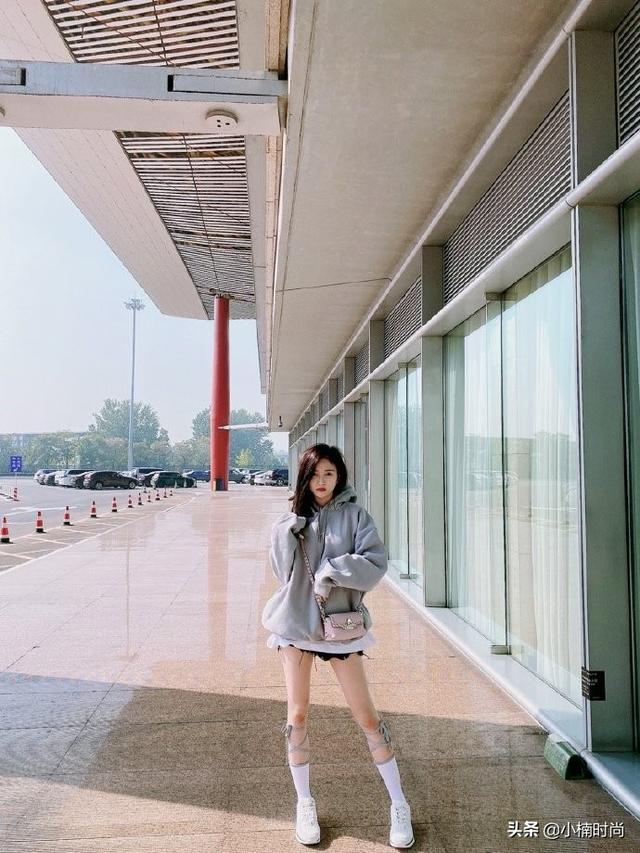 吳宣儀身上的這套連帽衛衣是非常常見的款式,顏色也是經典的灰色。衣身寬鬆,袖子肥大,落肩的設計讓衣服呈現一種耷着的感覺,讓穿衣的人顯得更加小巧了。