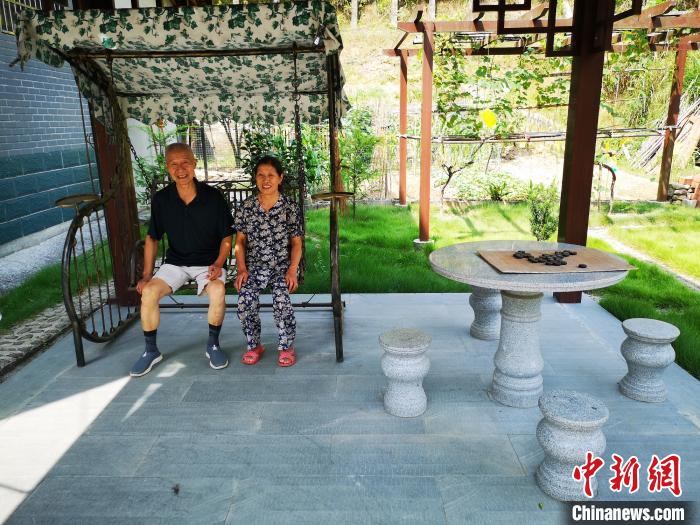 浙江省淳安縣東樹坑村,村民滿臉笑容坐在美麗庭院里。 范宇斌 攝