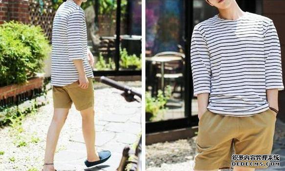 01.條紋T恤+卡其色短褲