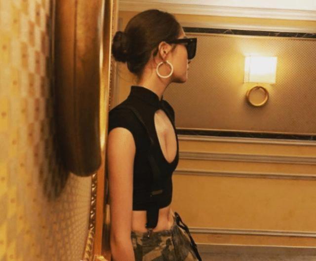 不得不說關曉彤的腿很長,這條迷彩長褲帥酷中又顯出大長腿優勢,很有魅力了,配着的露腰上衣顯出小蠻腰也是很讓人羡慕,但是特地在胸前開一個大洞秀身材就太明顯了一點吧。而且也太高估自己的身材了,高調的設計卻因為太過平的身材毀掉了,真的是又尷尬又可惜呢。