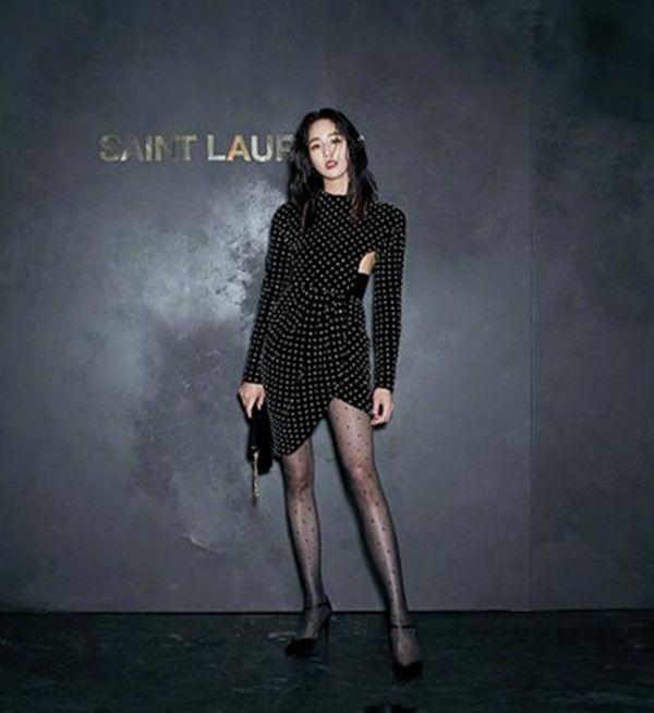 張鈞甯的這身打扮除了裙子本身最惹人注意的大概就是細高跟和絲襪了,波點的絲襪顯出一種成熟又俏皮的感覺,配着黑色的高跟鞋魅力十足又性感撩人呢。再加上裙子側邊的開口更加的霸氣性感了,就像是御姐一樣氣場炸裂呢。