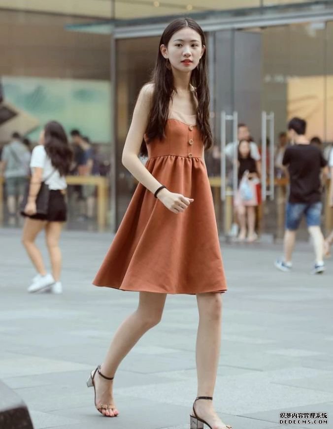 這個美女很瘦,所以穿這樣的娃娃衫裙子可以彌補她身材上的缺陷,整體看起來更加飽滿。裙子是棕色的,既不會覺得暗沉,也不會太艷麗,領口用了淺粉色拼接,增加了小姑娘該有的甜美和天真,衣服前襟的三顆紐扣起到了點睛作用,搭配上秀氣的一字鞋,很時尚哦。