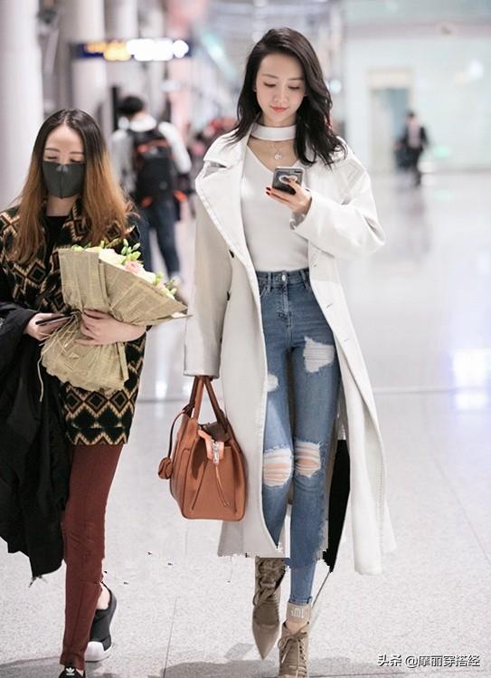 相信大家對王鷗這個女明星並不陌生吧,她的作品《偽裝者》,《琅琊榜》都是膾炙人口的作品。看她用一身白色的風衣搭配破洞緊身牛仔褲,顯得她氣質十足,同時腿也是特別長。但是我覺得這樣的緊身牛仔褲,還是與腿細的妹子更配一些。