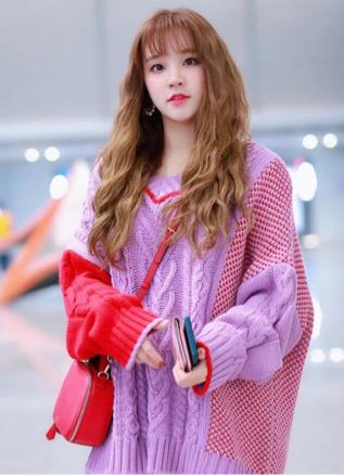 近日宋雨琦這一身機場裝太吸睛,粉紫色的毛衣就像冬日里照進機場的一道彩虹,紅色紫色粉色混搭排列,看似不規則,然而巧妙的色彩搭配撞色卻不突兀,一個斜背的紅色包包跟袖口顏色完美融合,整個造型色彩繽紛,暖色調空氣中瀰漫著甜甜的味道。