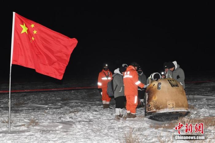 中新網北京12月17日電 (李京澤)北京時間12月17日1時59分,嫦娥五號返回器在內蒙古四子王旗預定區域成功着陸,標志著中國首次月球採樣返回任務圓滿完成。