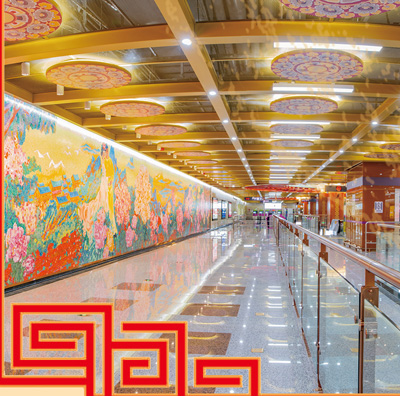 “麻煩幫我們在這面牆前留個影哈。”成都地鐵5號線撫琴站站廳里,唐利莎三個老朋友請過路乘客幫忙拍照,“五號線地鐵站修得很有藝術范兒,每個站都有自己的文化特點。我們從皇花園站(見圖,資料圖片)進的站,一站站挨着‘打卡’。”