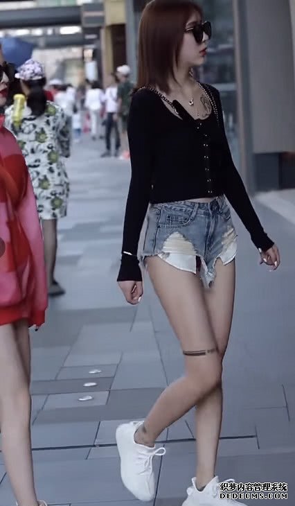 下身搭配的是一條不規則的破洞短褲,最近也是能經常看到這種類型的短褲,,不得不說也是火了一把,從側面上看也是能起到拉長腿部線條的作用,不得不說這位小姐姐身材真的是很好了,加上這件短褲的襯托,更是為她加分不少。