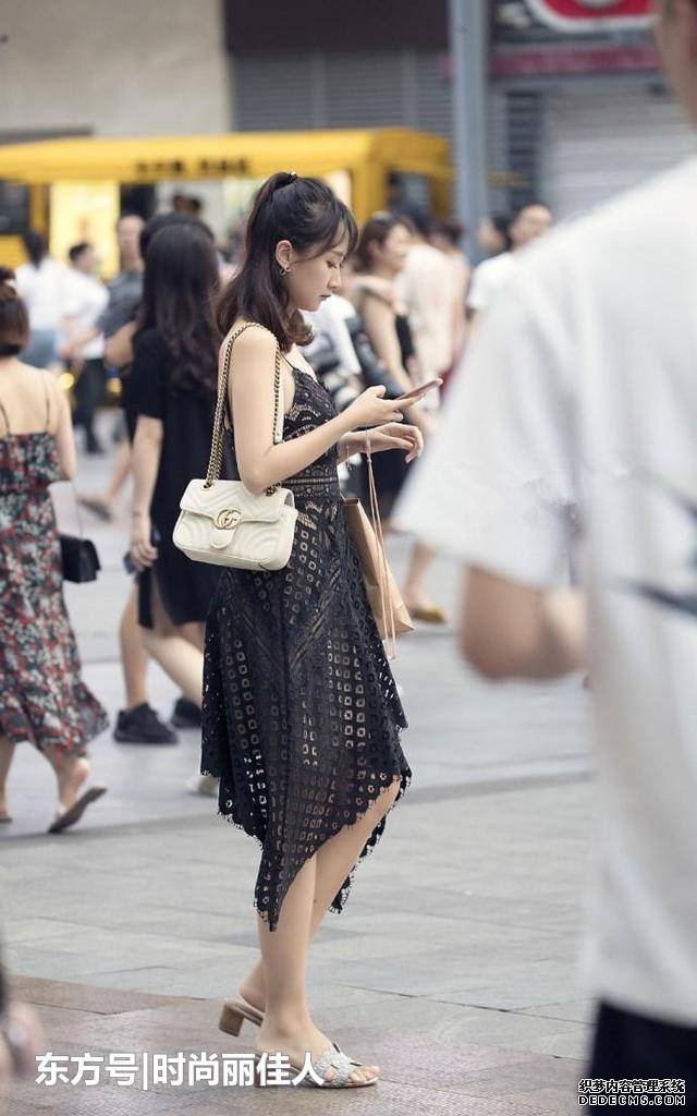 身穿連衣裙,小姐姐氣質溫婉文雅