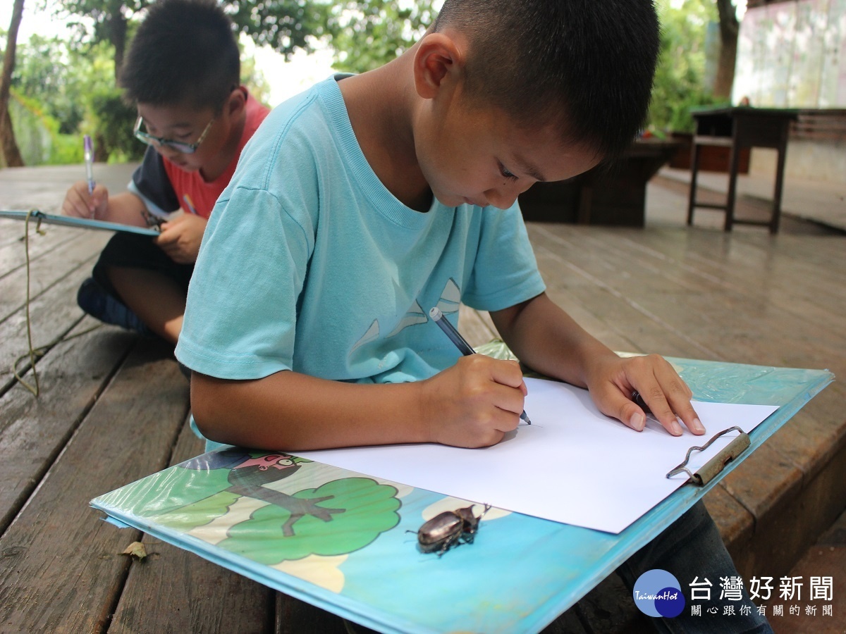 文德國小位於八卦山上的森林小學,因為坐擁豐富的生態資源,校園內營造豐富生態多樣性的環境,學校裡面的光蠟樹在暑假的季節裡,漸漸飛來非常多的獨角仙,而學校也透過獨角仙發展校本課程,張如瑩老師融入自然及藝術人文領域,教導學生觀察獨角仙並將它的特徵畫出以及進行後續的想像畫教學,都非常的有趣,而且也和語文領域的老師合作,進行融入作文的教學,都是讓獨角仙結合課程發展最好的案例。
