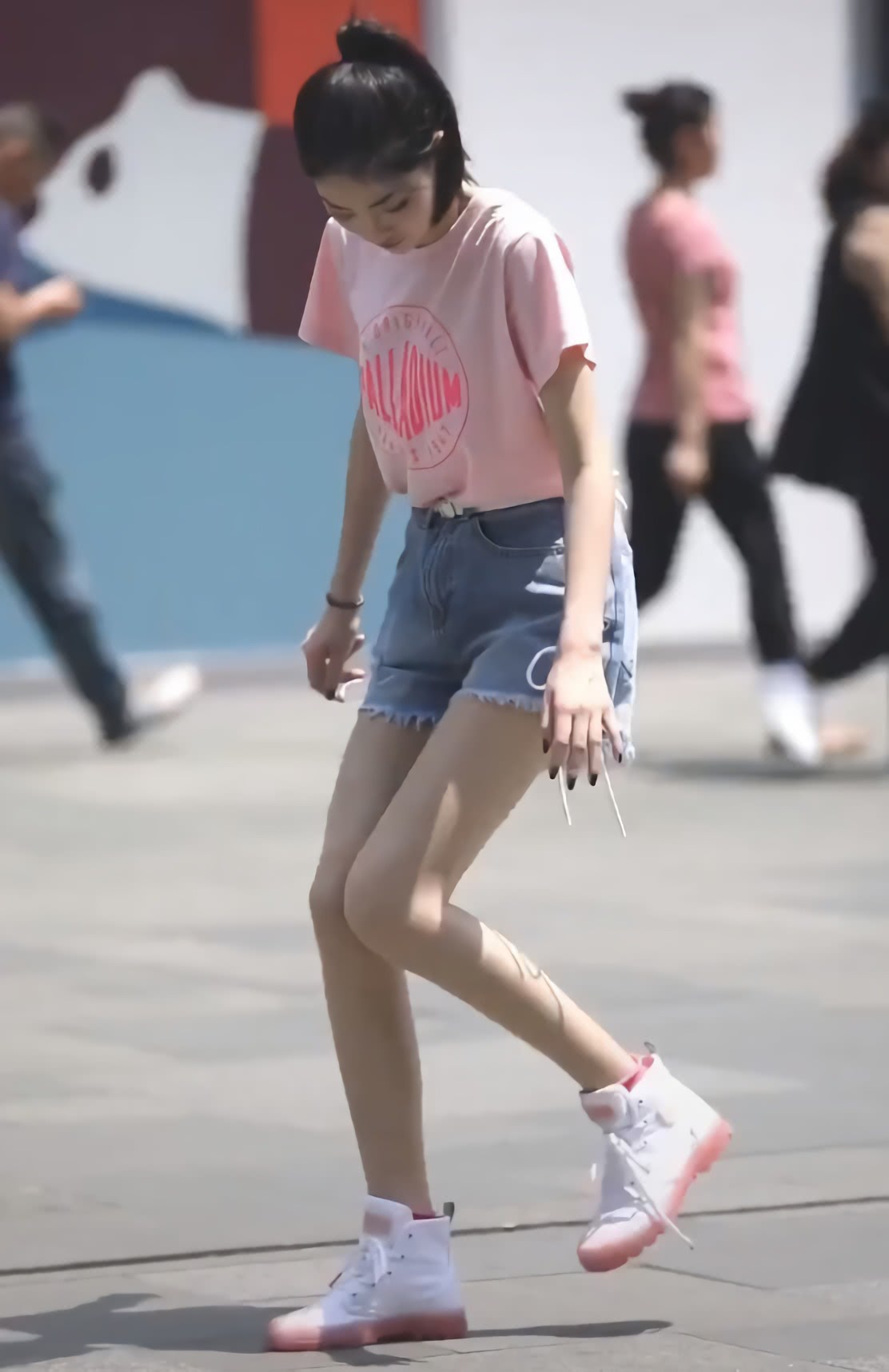 鞋子的設計還是不錯的,粉白配很有活力的氣息,適合年輕的女孩子穿,滿滿的元氣。而且高幫的設計,很好地修飾了腿型,顯得腿更修長了,展現出她的大長腿,非常吸引人。