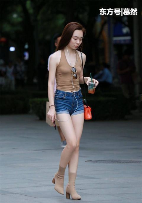大眼望去你會覺得說美女的身材可以說用體重不過百來形容,雖然很瘦很骨幹,但是她身穿的這一款修身小背心還是把她比較貧瘠的身材給彰顯了出來,棕色的顏色搭配倒是挺好看的。下半身的牛仔熱褲也是彰顯一種清涼的美!
