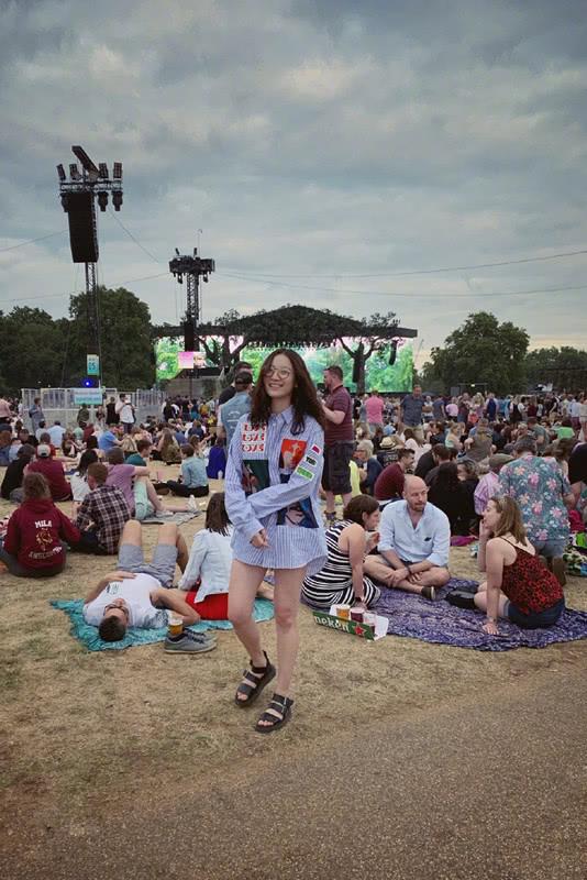 宋佳出行,穿塗鴉風格牛仔衣搭小腳褲