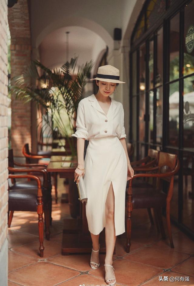 我們先來講一下顏色,一款好看的衣服,首先就是從顏色下手,我們看一下很多穿搭的比較大氣的女孩子,衣服選擇的顏色都是比較簡約的,不會那麼的花花綠綠,大家看上面這一款衣服,用的是一整套百搭的白色look套裝搭配,看起來就顯得非常的高級,還特別的減齡。