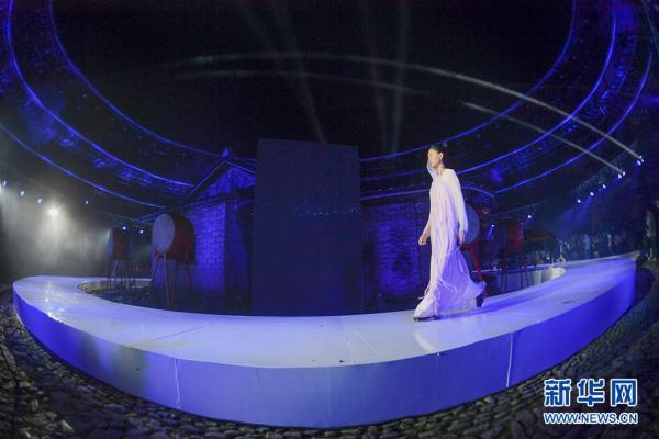 4月27日,模特在位於福建省南靖縣的土樓裕昌樓展示服飾。 當日,土樓光語國際時尚大秀在福建省南靖縣的土樓裕昌樓內舉行。這場融匯文化、時尚與旅遊元素的大秀,通過傳統與時尚的有機融合,展現南靖土樓及文化的魅力和風采。 新華社記者 宋為偉 攝